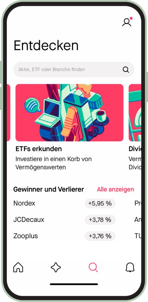 - Suche nach bestimmten Anlagewerten und erstelle Listen mit deinen Lieblingsaktien und -ETFs.